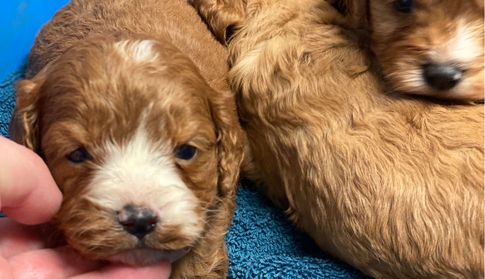 The father Ryder has been genetically screened and is clear for all testable hereditary conditions meaning that all Dotty and Hugo's puppies will be unaffected by all testable conditions Cavoodles are prone to.