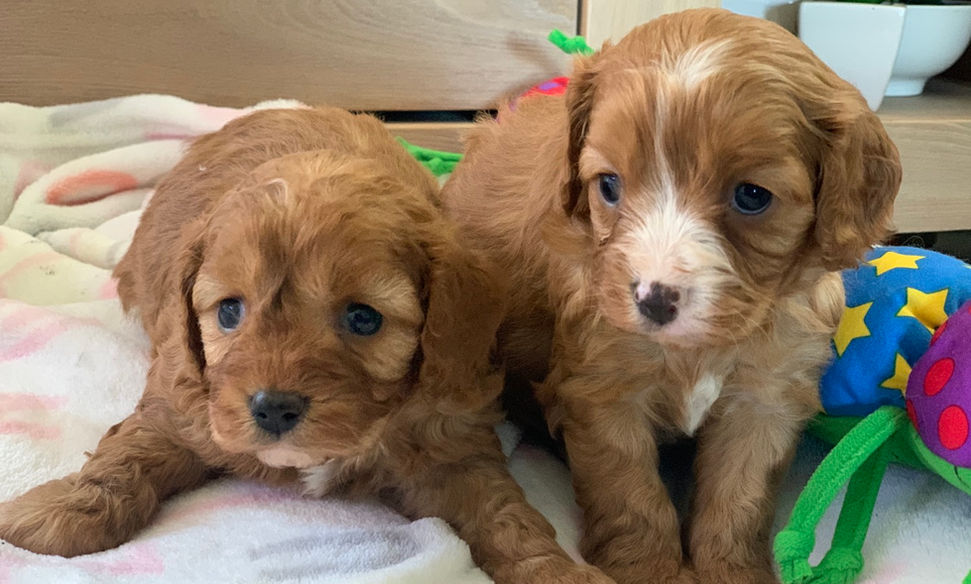These puppies are first generation mini cavoodle puppies and are expected to reach around 7-10kg full grown. They will be ready to go September 25th.