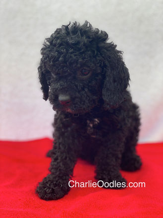 Black Female mini Cavoodle Red collar ref#2074